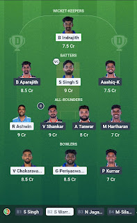 NRK vs SS | TNPL T20 Match-13 | 15-06-2025 19:15 | 1 | 0 | Preview Added | After-Toss Teams Added | 2 Get link Facebook X Pinterest Email Other Apps June 15, 2025 Nellai Royal Kings vs Salem Spartans Fantasy Teams Prediction Read more
